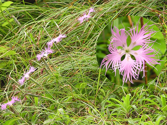 | エゾカワラナデシコ(7月30日撮影) | ガマ(左)とヒメガマ(右) (8月27日撮影) |