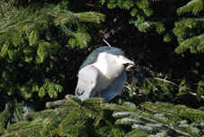 | 上のゴイサギ。 毛繕い中でしょうか? |