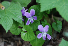 山野はスミレ類の最盛期に入り,スミレサイシン,ヒカゲスミレ,オオバキスミレの1品種であるフチゲオオバキスミレ(赤紫色の蕾が1番分かりやすい特徴です。亀田半島に生育しているものは,ほとんどこれのようです),そして,川汲公園ではナガハシスミレ(テングスミレ)が独特の長い距を立ち上げて群生していました。