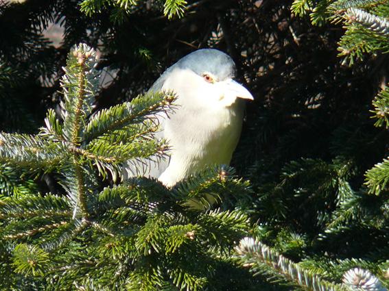 さて,昨年に引き続き,今年も「律儀」に再来したゴイサギですが,このところしばらく姿を見せませんでしたので,やはり春を前に本州に渡って行ったのかと思っていました。しかし,今朝,何気なくいつもの場所を見ましたら,1羽のみでしたが間違いなくいました。残り1羽はどうしたのか分かりません。しかし,1時間程で,またトドマツの繁みの中に戻ったようで,見えなくなりました。昨年に較べて日なたぼっこの時間は短いようで,もう1羽も出てきません。恐らくは,カラスの威嚇が激しいためと思われます。