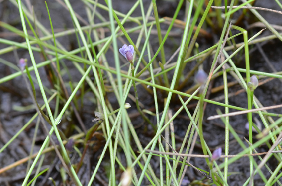 | ムラサキミミカキグサ(静狩湿原,2012年8月25日撮影) 縦横に走っているのがエゾハリイの稈で直径0.5mmくらいです。 |